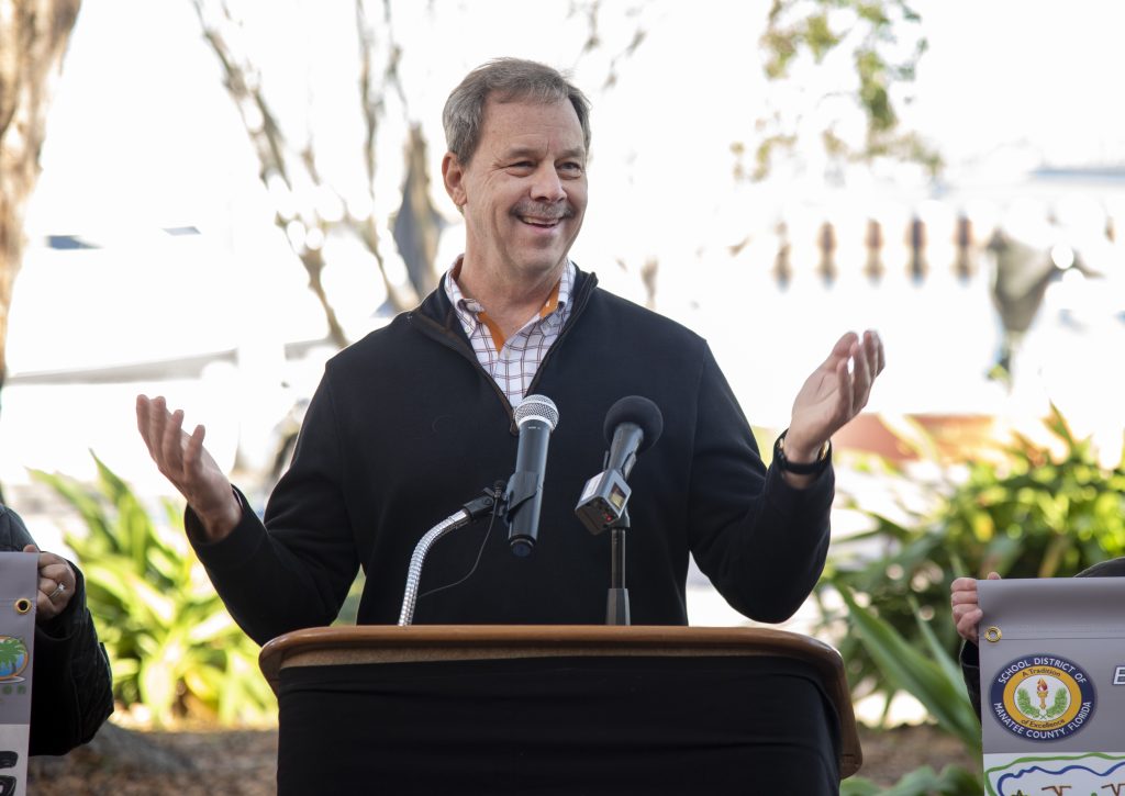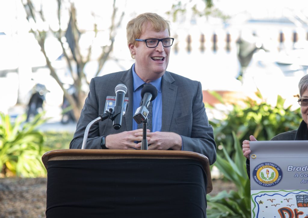 The City of Bradenton hosted a ribbon cutting last month for the Bradenton Reads! Exhibit Grand Opening. The project, a partnership between the City of Bradenton and the School District of Manatee County through the Public Art Advisory Board, the School District of Manatee County Early Learning Team, and Soar in 4 Manatee, promotes the importance of early literacy through art. Mayor Gene Brown assisted in the ribbon cutting alongside School District of Manatee County Superintendent Dr. Jason Wysong, Vice Mayor Marianne Barnebey, and Council members Jayne Kocher, Pam Coachman, and Lisa Gonzalez Moore.