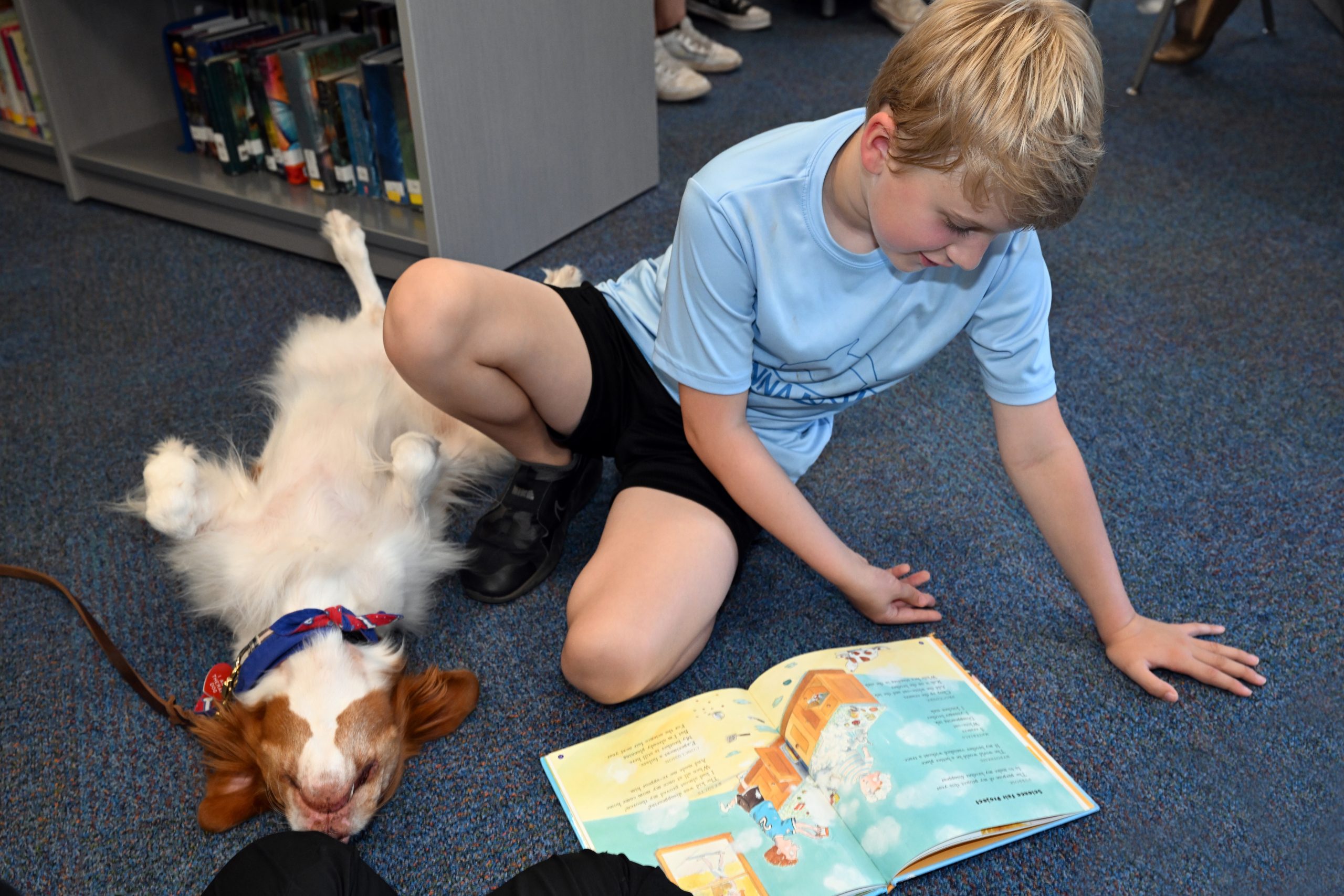 “I’m not sure who enjoys this hour more—the students, the teachers, the dogs, or the owners,” she says. “It creates this warm, welcoming space where kids can relax and enjoy reading.”
