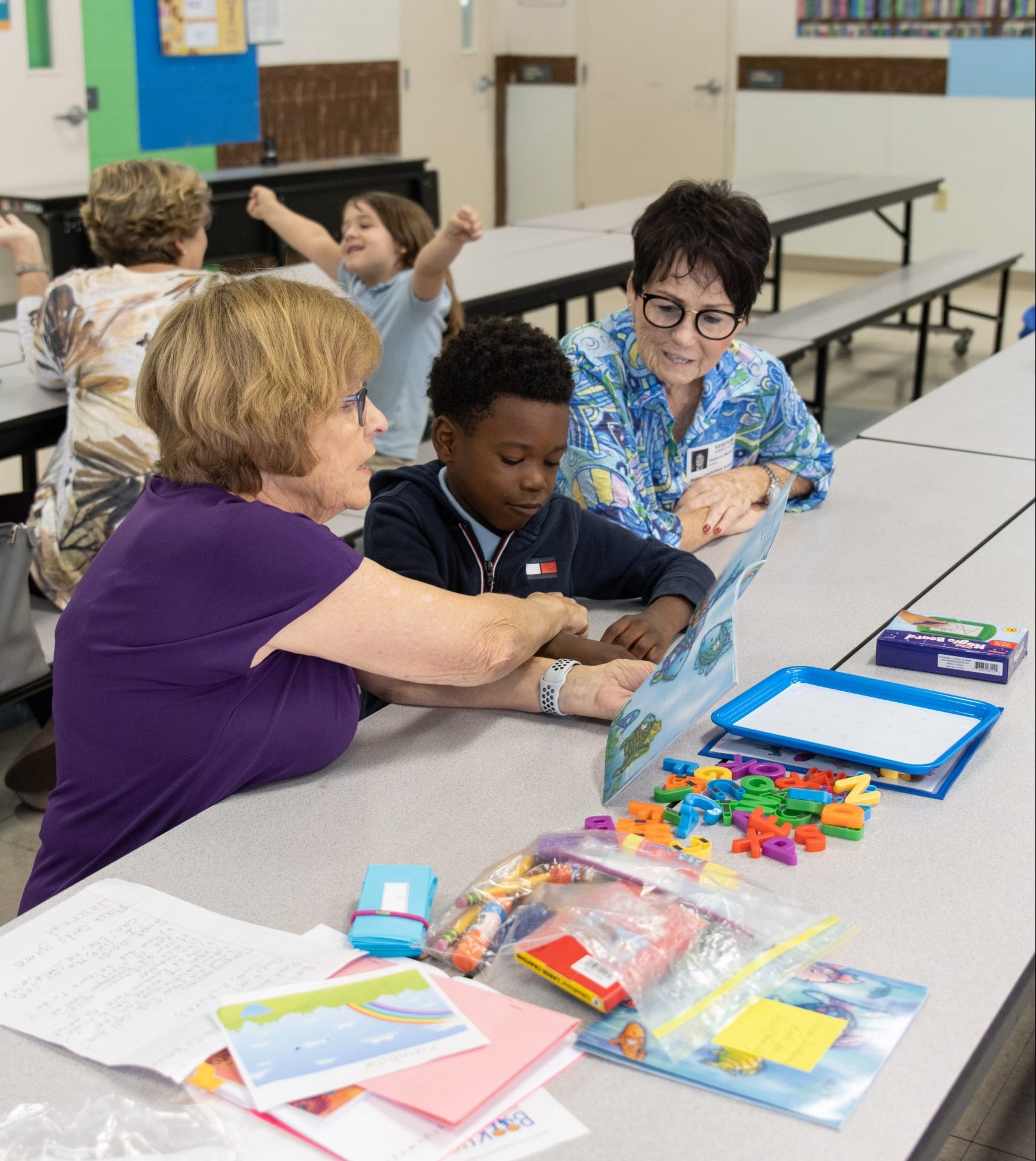 Diane Thomas is one of the mentors for the kindergarten pilot program. “This is my first time working with the Rotary’s program. One of this program’s wonderful advantages is giving the child a book. Sometimes these are kids who don’t have books,” Diane explains. “It also exposes children to a higher level of vocabulary. Children can learn any word you know, even ones you don’t want them to know!”
