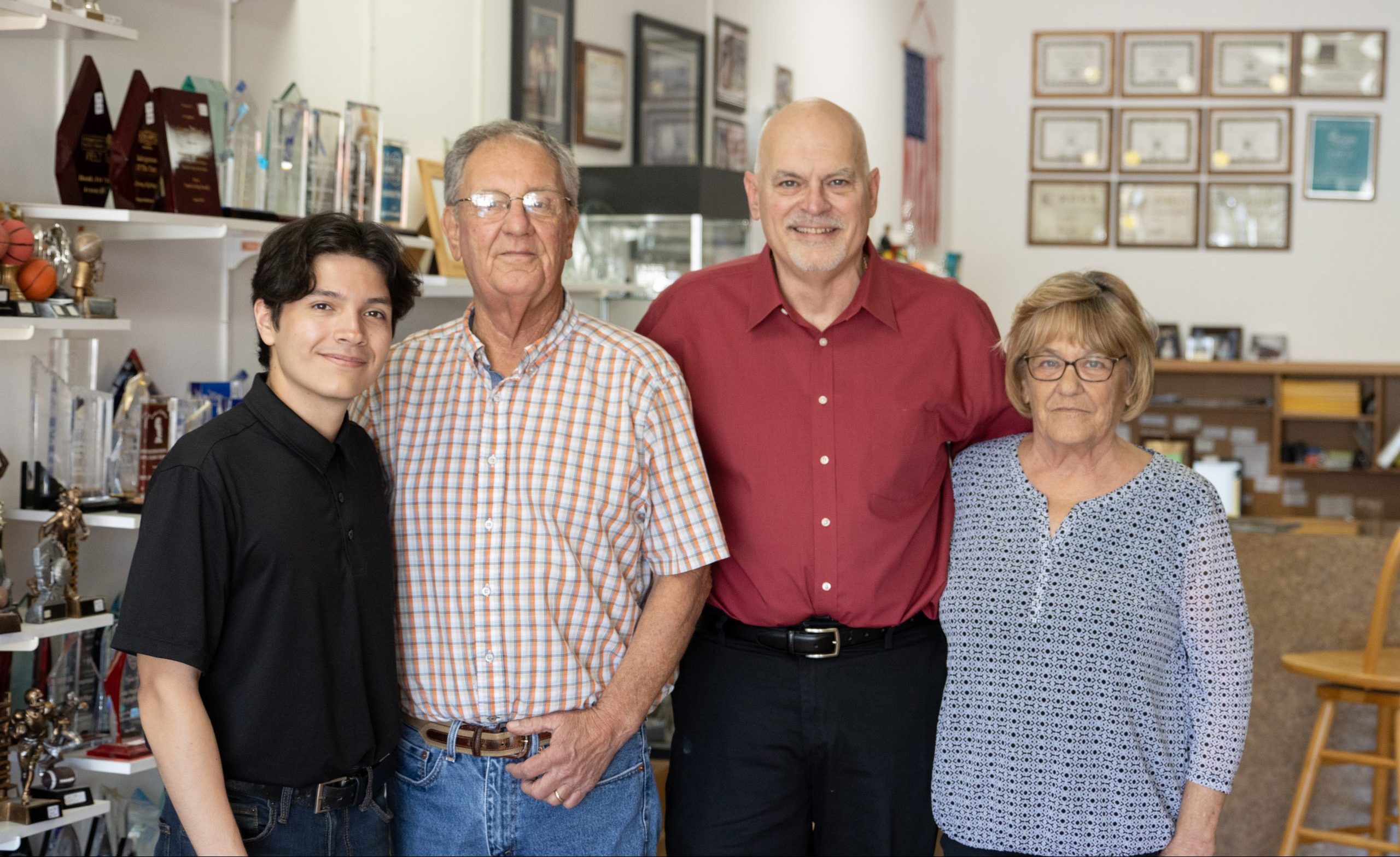 As Don started his trophy business, computer engravers had just come out. He bought a used engraver and taught himself at his kitchen table how to engrave. He bought parts for trophies and began to figure out how to lay out plaques. He says he learned from making mistakes.