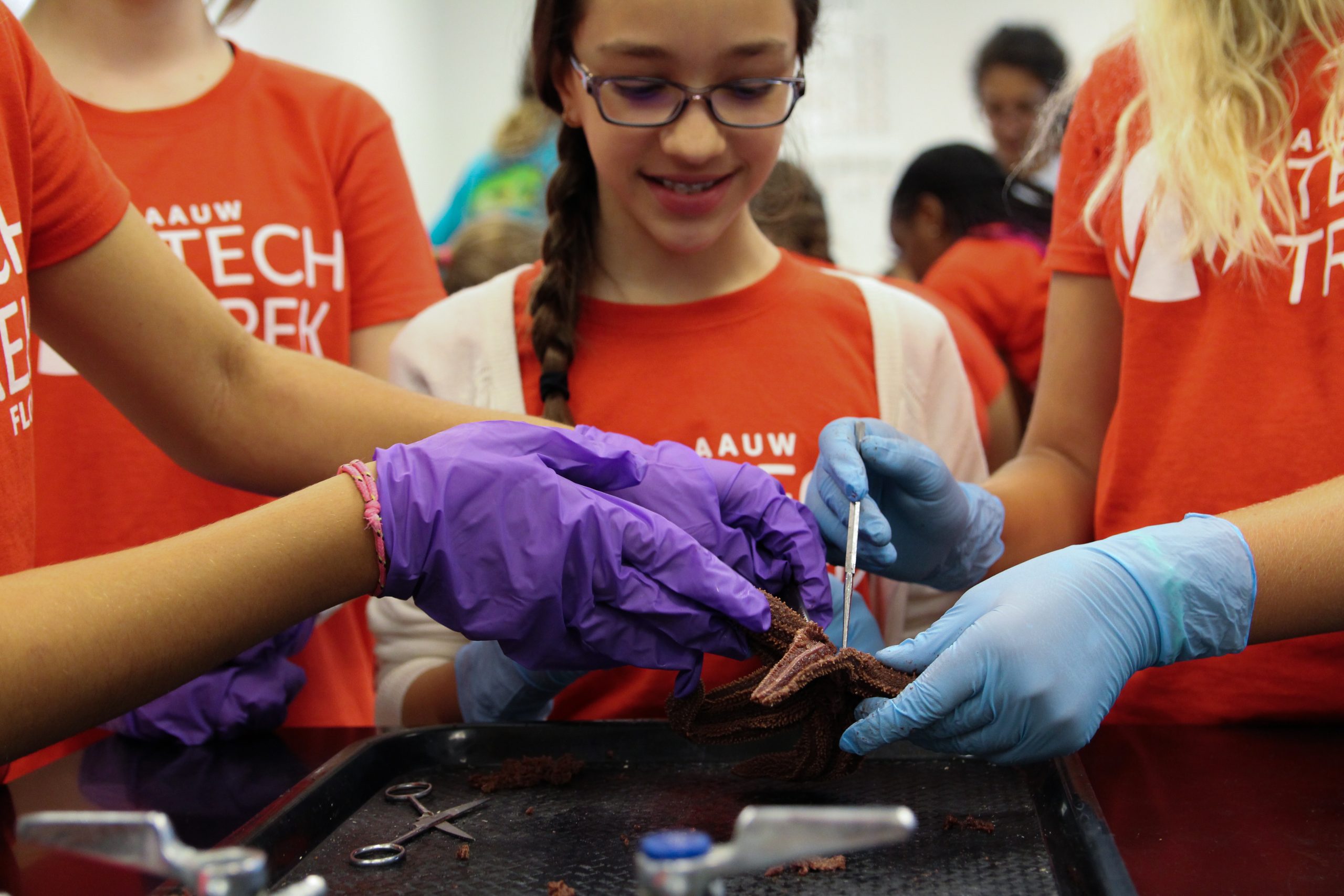 Another major focus for AAUW’s Manatee County branch is Tech Trek, a week-long summer camp for girls entering eighth grade, themed around science, technology, engineering, and math (STEM). At the camp, girls explore subjects like software development, climate change, chemistry, engineering, robotics, and more, with each year’s camp focusing on specific core courses.