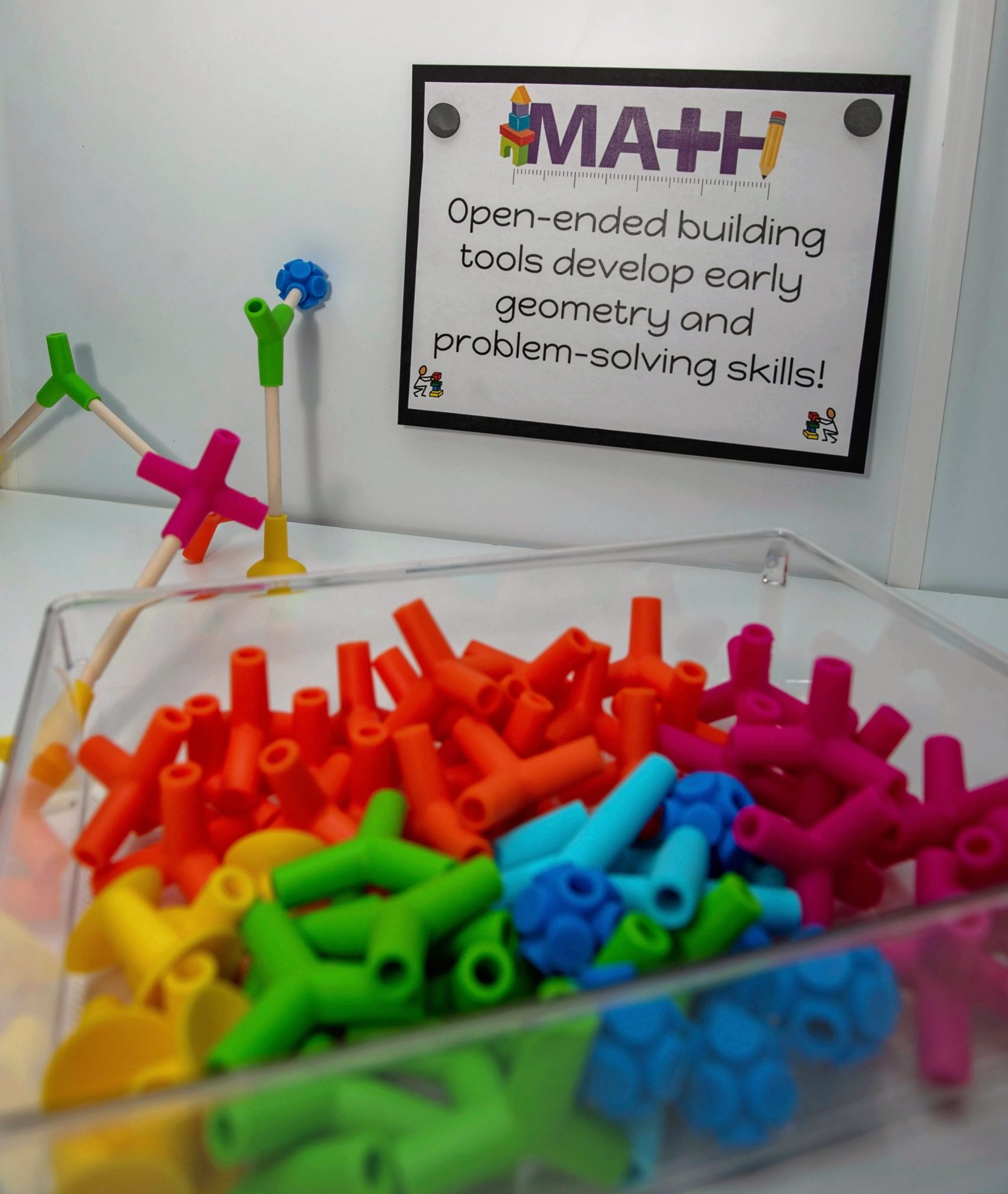 There is a 60-inch TV on a swivel arm that allows for the display of educational content or past learning with a photo slideshow. Making learning visible is a strategy that will enable children to strengthen their ideas by connecting previous experiences to new concepts. Children can also take cues from seeing the work of other children, making their projects more relevant.