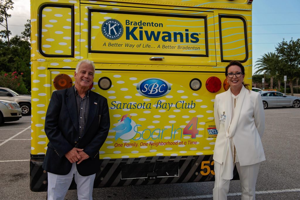 For the bus to become a first of its kind in Florida, it went through a $50,000 transformation – becoming a classroom on wheels! Generous donors funded the project with both talent and monetary contributions. The bus was made possible by the Kiwanis Club of Bradenton’s $20,000 donation and a $6,000 donation from the Soar In 4 initiative. The colorful ceiling was designed and beautifully painted by the students of Manatee Technical College.