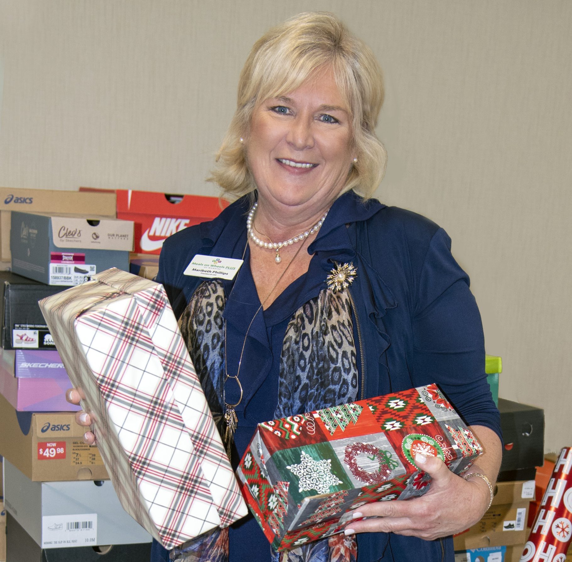 Now, as President and CEO, Maribeth and MOW took over the shoebox program—and the rest is history. Those 36 boxes have now turned into a mini fundraiser at the Lakewood Ranch Elks Club with a happy hour and raffle prizes. In 2023, they collected over 2,200 boxes, and it continues to grow every year.