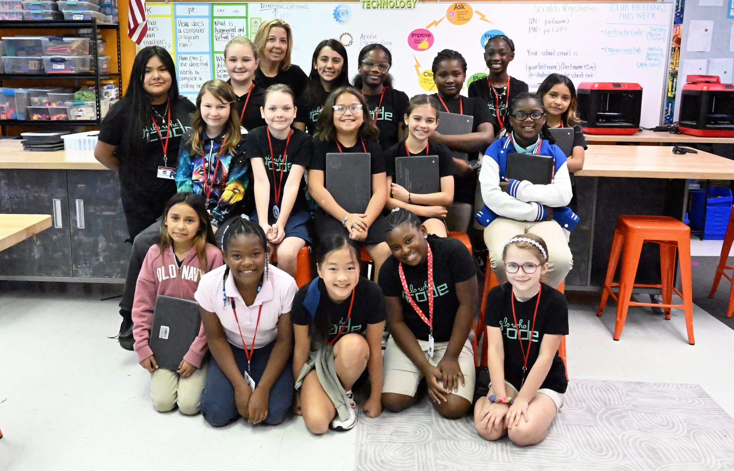 “Our school has been working to build strong TSA programs at the middle school level,” she says, “and we’d been trying engaging ways to introduce students to coding—to show them that beyond it simply being educational, it’s fun. I thought starting a Girls Who Code club would be a great way to get more students involved and interested.”