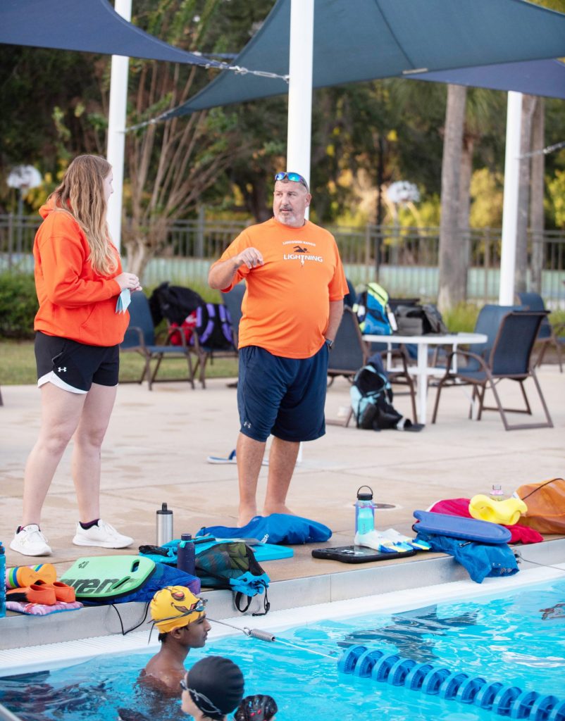 Head Coach Steve, also the Lakewood Ranch High School swim team coach, has been the Head Coach of the Lightning for several years. When he took over, the Lightning was a team of only 45 kids, and now he leads a team of 140 kids with a waitlist. Although it is still a small team in comparison to their competition, many of which have 300 to 400 kids on a team, a surprising number of swimmers place in the top 25 consistently in the USA Swimming sanctioned swim meets they compete in. Coach Steve would love to continue to grow the team but understands that pool space is limited, and so for now, they are at their capacity.