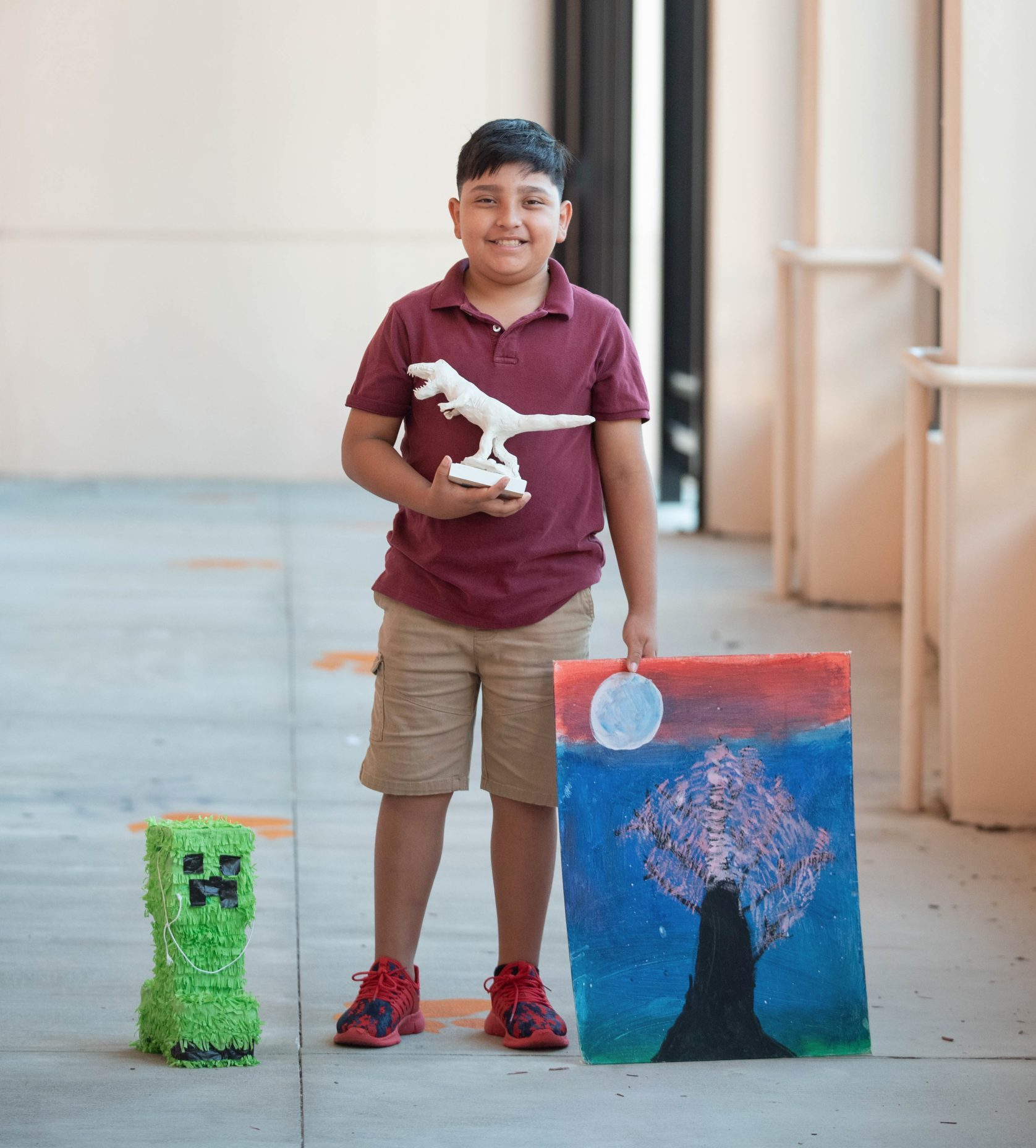 Angel Ballesteros-Santillan has an amazing gift for visualizing and recreating forms in 3D. At just ten years old, his ability to sketch something and then build it three dimensionally has already earned him accolades, not just with his third-grade art teacher and his friends and family. His sculptures have even been exhibited at the Manatee County fair and the Bishop Museum in Bradenton.